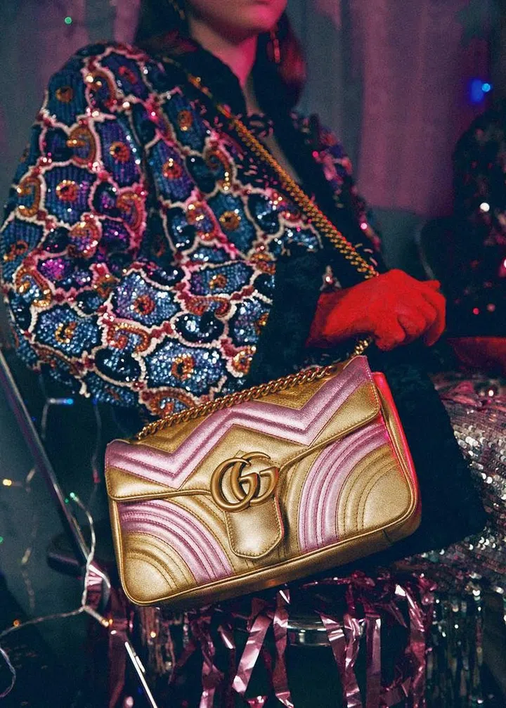 Gucci的2018 年 Gift Giving 假日广告隆重登场。这次的 Gift Giving 活动涵盖许多产品,从首饰、手袋、鞋履到家居用品,透过一连串的活动与宣传短片推广。就如这款Gucci GG Marmont 包袋染上了鲜艳的金粉色,宣扬着假日送礼的喜悦。另外,Gucci App 将推出独家互动内容,只要摇一摇流动装置,Gucci 特备礼物盒便会展示不同的虚拟礼物。就像圣诞倒数历一样,用户每天可探索不同内容,然后透过 gucci.com 选购产品。