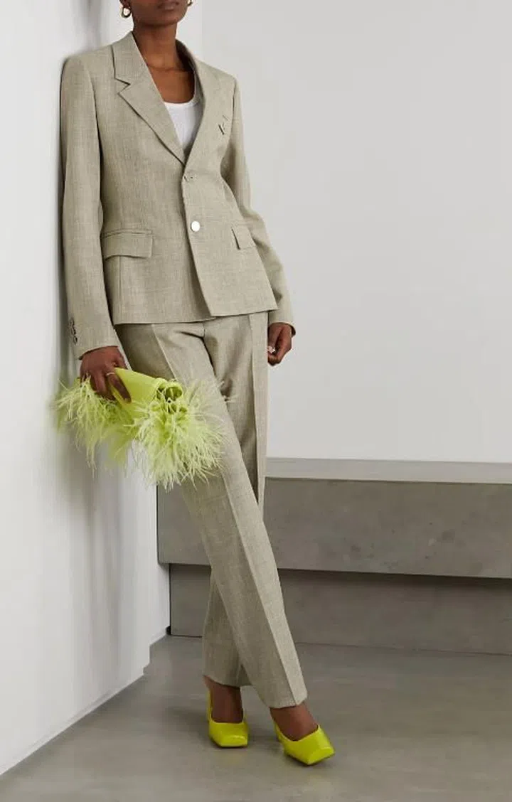 直筒版型的西装长裤更显利落,随着不同上身单品搭配的变化,呈现与众不同的气质。你也可以直筒西装裤搭配同色系的西装外套,更显高级率性还能达到显瘦效果。