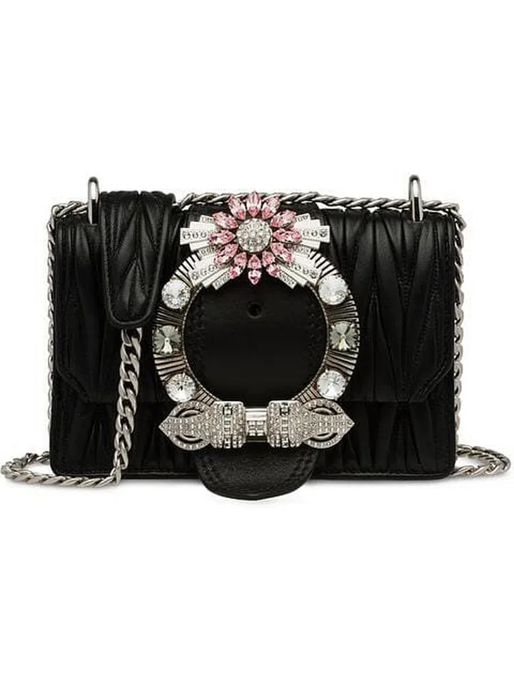 Miu Miu 取设计师 Miuccia Prada 的童年昵称为名,创始于1993年,展现前卫、反讽和时髦的时髦单品。揉合反叛与实验主义,这款 “Miu Lady” 人气包袋精美百搭,已然俘获了一众时尚达人的芳心。当然,不忘Miu Miu标志性的马特拉塞凸纹绗缝,正面的皮革袢带上缀有超大水晶搭扣,颇具辨识度。