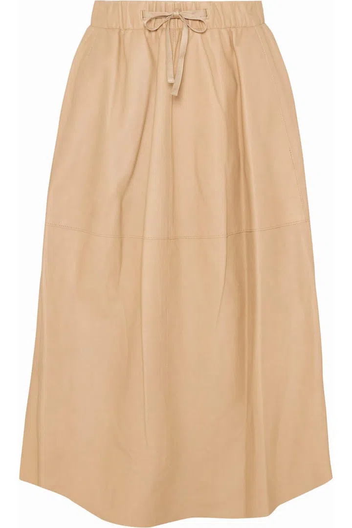 对于喜欢中性色调和暖色调的人来说,这个或许适合你。为平日增添点色彩,不妨加入Vince 米色中长半身裙。与其配上另一种棕色或卡其色,我们选择了Société Anonyme酒红色T恤,在保持暖色调的同时,为你的衣橱加入新色彩。