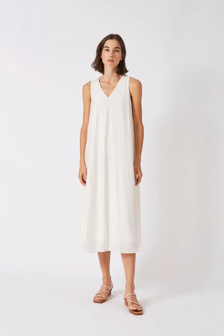 这款V领无袖长裙采用柔软的人造丝混纺面料制成,具有质感的表面,属于便利的免烫款式!柔和的V领设计,搭配隐藏式后拉链及两个侧面口袋,打造简约大气的造型。