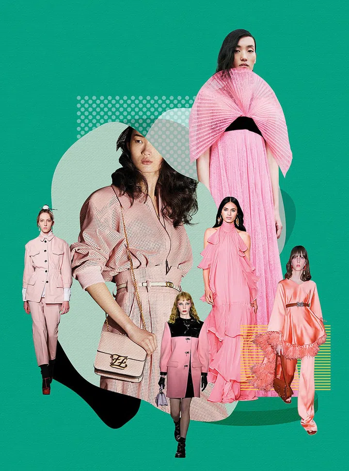 千禧粉(Millennia Pink)作为延续几季的关键色彩,在2020早春系列中依然备受瞩目,这回以偏橙色的粉调来更新粉红色,打造柔和的优雅与奢华。这款棉花糖嫩粉色将于明年强势回归时尚圈,Valentino、Fendi、Prada、Louis Vuitton和Givenchy等品牌皆在本季推出此类颜色的单品。充满浪漫格调的粉色调,不仅限于漂移的连衣裙,就连帅气的西装与粉衣也染上了梦幻色调,营造简约精致的现代造型。