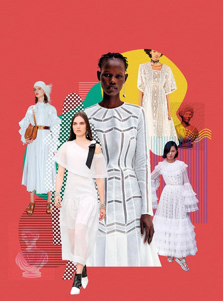早春系列,又被称为度假系列,就是让消费者在度假时也可穿上华丽的衣装过着美好的奢华生活。因此,系列中会出现面料轻盈的连身裙,适用于旅行时穿戴。明年,在Dior、Gucci、Valentino和Gabriela Hearst等品牌系列中,可见精致浪漫的白色棉质蕾丝或轻质薄纱连衣裙占有一席之地。这些类似于纳维亚村庄的传统服装,点缀唯美的薄纱、荷叶边和钩编细节,让女人在步伐之间,展现灵动大方的优雅姿态。