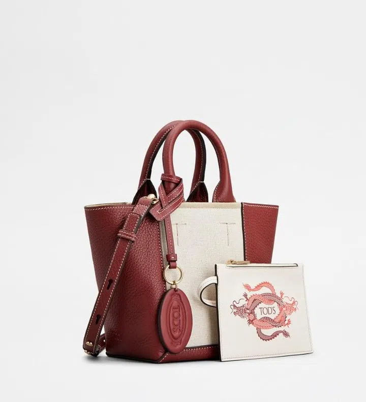 Tod's 2024龙年限定系列,以中国传统威龙形象为设计灵感。品牌标志性皮革配饰采用酒红色色调,缀上特殊双龙图案,迎接农历龙年的到来。龙年系列中的Tod's皮革购物手袋的内袋亦饰有双龙图案。