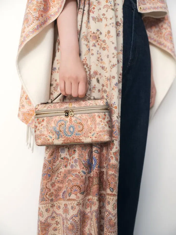 龙是力量、好运和智慧的象征,Loro Piana的农历新年胶囊系列灵感来自东方文化,采用品牌独家纱线制作的服装和配件上装饰着龙形刺绣花纹或风格化图案。一系列细腻柔和的色彩,从淡紫色、粉色、淡蓝色到海蓝宝石,其包款作品包括Extra Pocket手袋,优雅体现低调优雅独特风格。