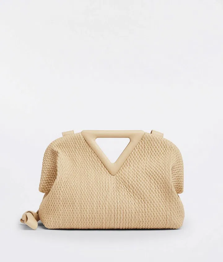 性冷淡风的时髦手袋,为日常造型提升质感。Bottega Veneta的Point手袋攻陷无数女人心,新推出的燕麦色,温柔又仙气,从上班到约会,游走于各种生活场景无难度。手袋顶部装饰了倒三角形的磁性封口提手,包身则以柔软羊皮革制作,呈现出编织纹理,一刚一柔的材质配搭,激荡冲突美感。此外,手袋也配置了可拆卸肩带,提供手提和肩背方式。