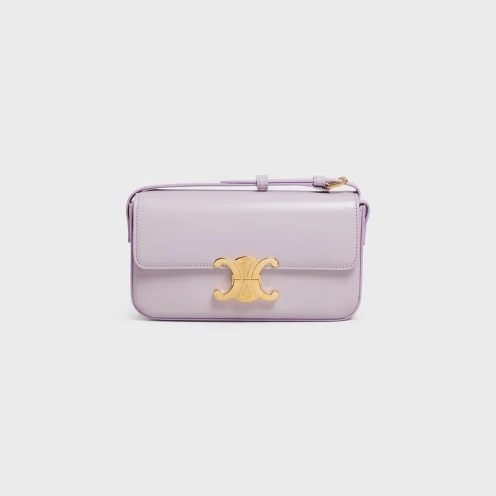 Celine超人气的TRIOMPHE手袋,设计简约优雅,能轻松配搭日常造型,堪称是一款百搭万用包。这款手袋以亮面小牛皮材质制作,饰有品牌标志性的金属锁扣,配有可调整长度的肩带,疗愈的粉紫色也为女人气质加分。