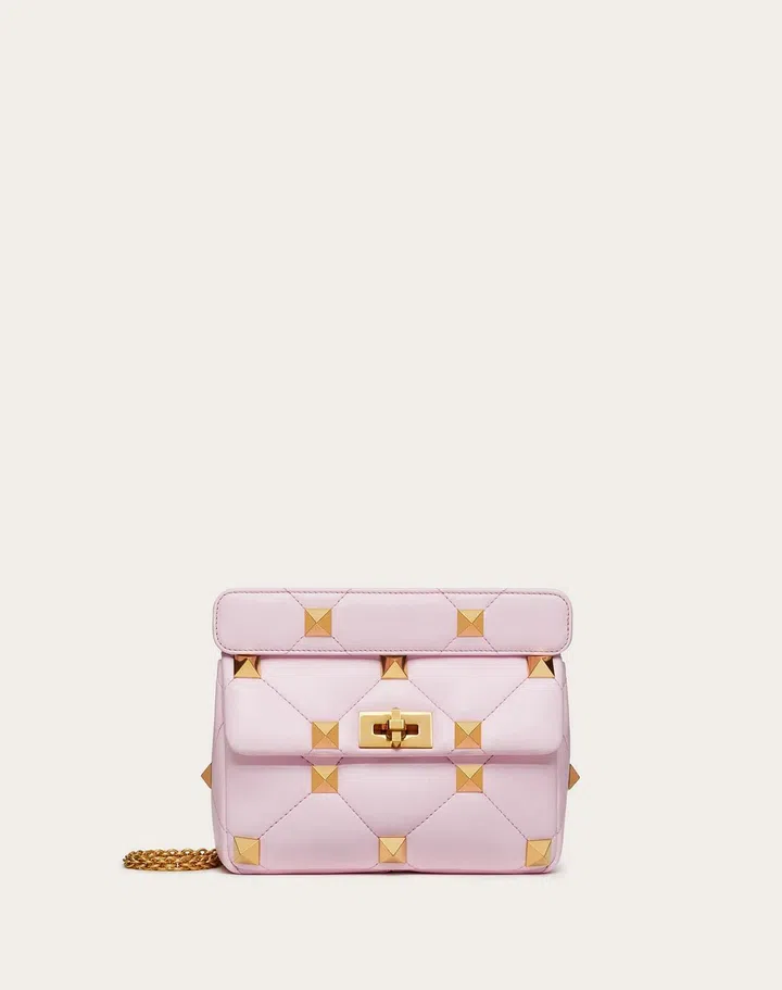 释放女人的摇滚少女心,Valentino的这款Roman Stud中号羊皮手袋以淡粉紫加上铆钉,一柔一刚的元素撞击出精彩的时尚火花。此外,它也搭配了一条可拆卸提手和滑动式链条肩带,可斜挎、肩背或手提。