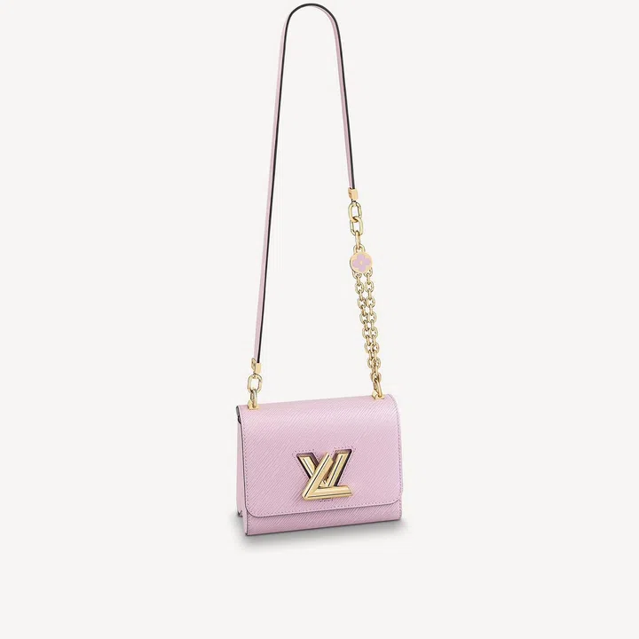轻巧的Twist PM小号手袋,采用Epi粒面皮革制作,金色链带上缀有手工镶嵌的珐琅Monogram花卉图案,配搭粉紫色调,完美契合春夏活泼奔放的氛围。可灵活调整链带的长度,作为单肩包、斜挎包和手拿包使用。