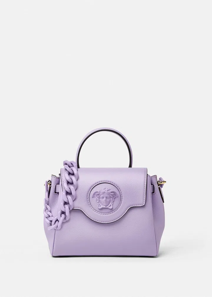 Versace旗下的La Medusa手袋去年亮丽登场,饰有标志性的美杜莎板饰,以及宽松流畅的包包廓形,以缤纷多彩的色调迅速俘虏女人心。新推出的小号款手袋,多了精致萌度,粉调的香芋色柔美清新,可挂在手腕上,也可肩背。