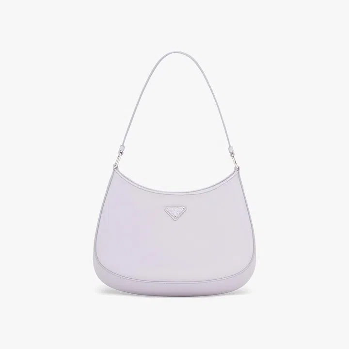 款式经典不过时的Prada Cleo亮面皮革单肩包,重新诠释了品牌90年代的标志设计。时尚的新月包型彰显了简约的弧形线条,配上清新的粉紫色调,凸显女人温柔甜美的特质。