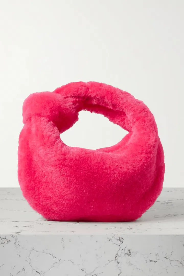 Bottega Veneta的Jodie手袋自推出以来,已经过多番演绎,推出多种配色与纹理版本。这款迷你Jodie包包以绒软的粉色羊毛皮替代了标志性Intrecciato织纹皮革,毛绒绒的触感让人爱不释手,桃红色调更为整体增添一抹华丽气息。