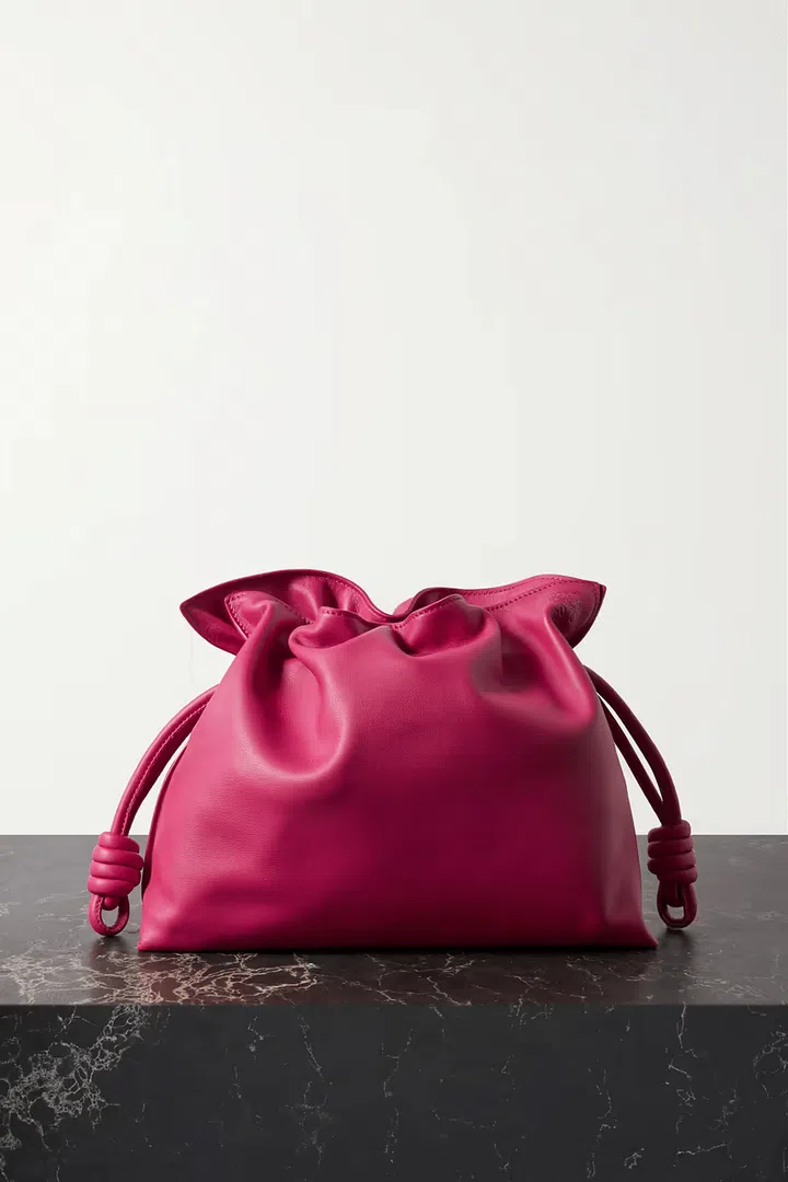 Loewe的Flamenco手拿包诞生于品牌历史悠久的马德里工坊,采用柔软滑腻的皮革制成,两侧点缀着经典的结饰系带。充满活力的紫红色,让包包衬托出简约而不简单的清新感。