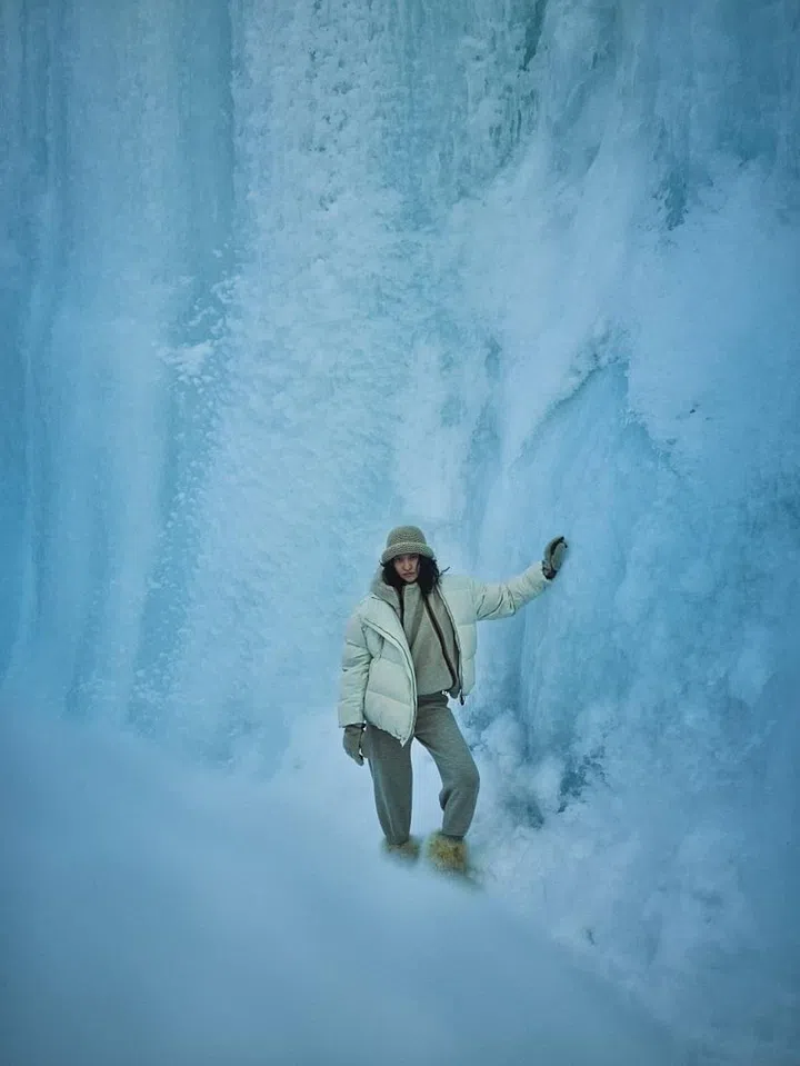 Loli-Bahia以自然随性的态度演绎Coco Neige系列的大胆精神。她身穿羊绒与丝绸混搭的套装,山茶花图案如小云朵般点缀其中,鲜亮的双C标志散发俏皮气息。温暖的灰色、白色与米色调交织,深酒红和鲜艳的红色注入独特亮点,融入针织裤装、外套、内搭衣物和丝绒感毛衣,展现现代摩登风范。配件方面,菱格纹手套、面罩与复古风滑雪镜,配上菱格纹运动鞋和羊毛短靴,优雅诠释滑雪场上的别致风采。黑白滑雪板和滑雪杖上的双C标志,则赋予造型精致且引人注目的细节。