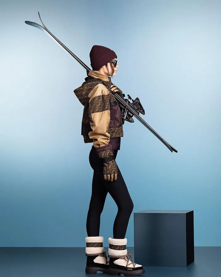 从滑雪服到雪后休闲服饰(Apres Ski),本季系列通过运用色调与材质,展现品牌对标志性图案的独特诠释。单品涵盖滑雪外套、高科技毛衣、尼龙长裤、功能性针织长裤及科技布羽绒外套等,兼具保暖性与时尚感。配饰方面,则包括滑雪头盔、羊毛与羊绒帽子、麂皮靴子以及双雪板等,各个极具奢华细节和巧思,尽显冬季度假时尚的无穷魅力。