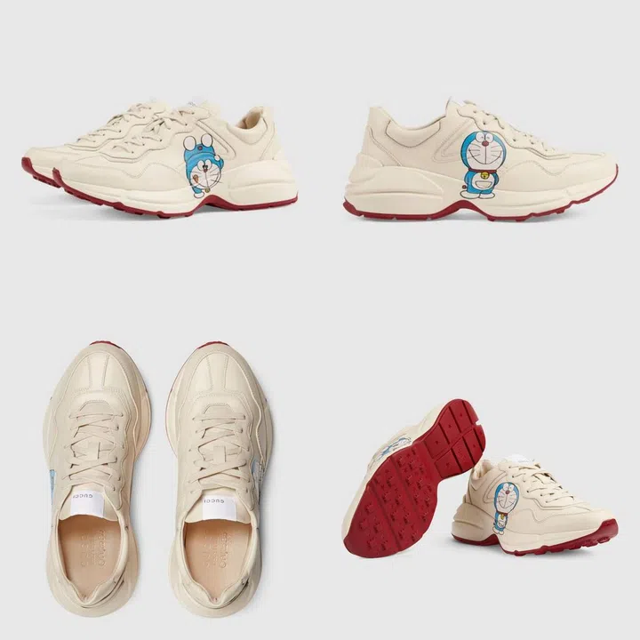 喜欢小叮当的你要注意了!Gucci与哆啦A梦联手呈现特别系列,其中这款Doraemon x Gucci联名系列Rhyton系列女士运动鞋,将经典卡通形象巧妙融入在厚底运动鞋,俏皮十足。