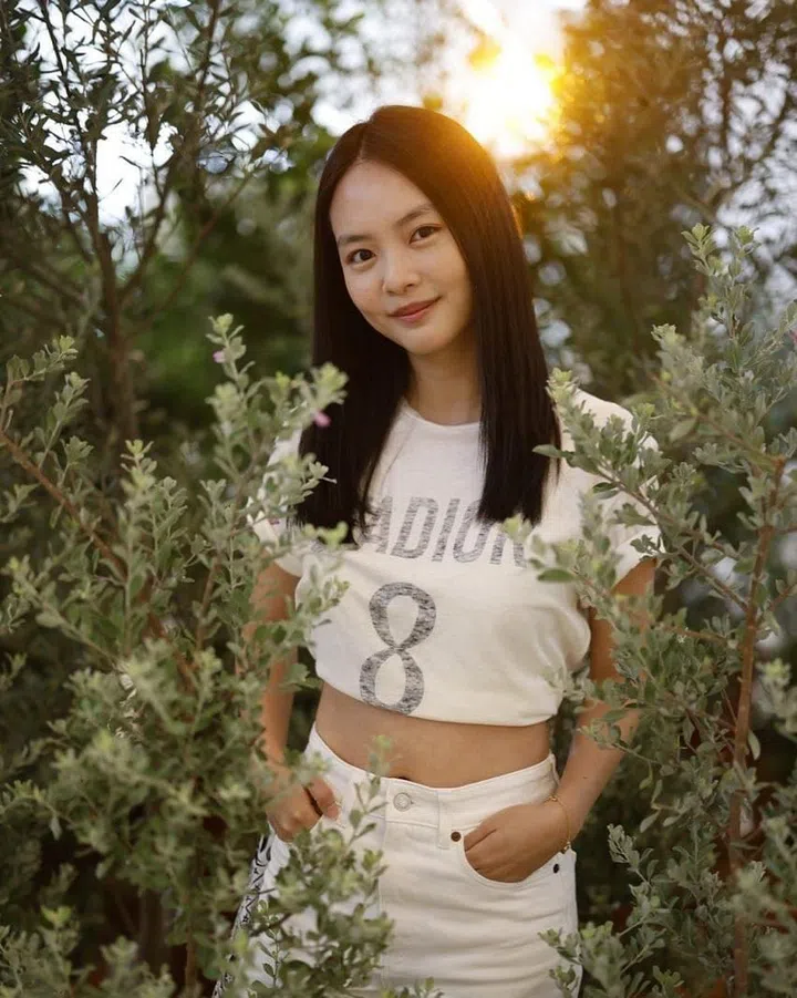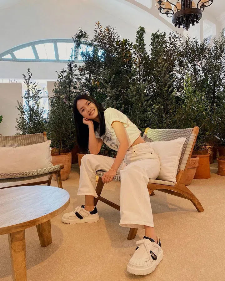 演员黄暄婷以一身休闲造型现身Dior Cafe,将Dior T恤改为短款上衣,搭配白色牛仔裤和Dior-ID运动鞋,尽显少女的活力和清新感。