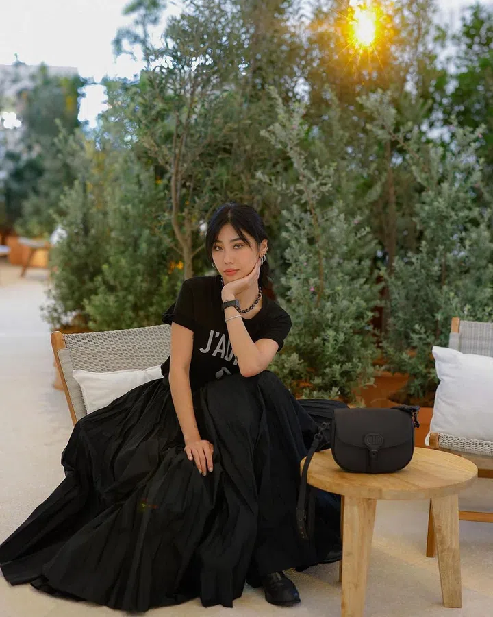 时尚博主Willabelle Ong在自己的社交媒体上为粉丝们展示了Dior 2022早春新品,她出席活动时以简约大气的“J'ADIOR 8”图案T恤搭配飘逸的Dior黑色薄纱面料长裙,手提白色Dior Caro包款,气质出众。