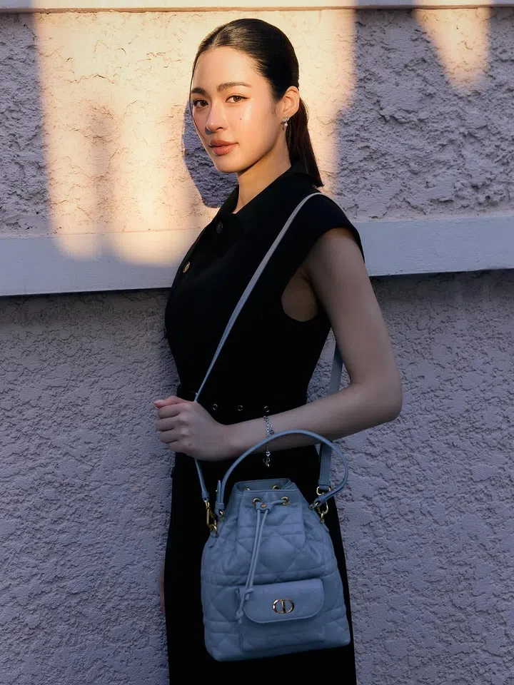 时尚明星爱包:刘子绚、邝玲玲都在背Dior Caro Bucket水桶包跟随明星们的时髦步伐, 解锁Dior最新包款Dior Caro Bucket水桶包的优雅魅力。 文 / Hayley Zhang Yujie / 13 May 2025Photo Courtesy of @jesssseca and @linglingkwong IGDesigner Handbags, Fashion, Luxury HandbagsShare this article迪奥(Dior) Caro皮具系列以向品牌创始人Christian Dior的妹妹Catherine Dior致敬。2025秋季,品牌首次推出推水桶包款式,选用珍贵皮革打造,以束绳设计与柔和包身曲线彰显非凡工艺。从手绘草图、孔眼镶嵌、皮革鞣制到各部件的精准组装,每一道工序皆体现出品牌对细节与创新的极致追求。Dior Caro水桶包Photo Courtesy of © Sophie Carre/Dior Dior Caro水桶包共有迷你和小号两种尺寸,采用羊皮和拉菲草精制而成,饰以放大藤格纹缉线,内部设有宽敞的抽绳隔层,实用性与美感兼备。正面翻盖口袋点缀金属“CD”标志,可妥善收纳日常随身物品。搭配可拆卸顶部手柄,以及可调节、可拆卸的肩带,提供手提、肩背与斜挎等多种背法,灵活百搭,尽显现代女性风采。一起来看刘子绚、欧萱和邝玲玲等明星的时髦演绎。欧萱 Jeanette AwPhoto Courtesy of @jeanetteaw IG1/9刘子绚 Jesseca LiuPhoto Courtesy of @jesssseca IG2/9邝玲玲 Lingling KwongPhoto Courtesy of @linglingkwong IG3/9Orm KornnaphatPhoto Courtesy of @orm.kornnaphat IG4/9Kimberley Anne WoltemasPhoto Courtesy of @kimmy_kimberley IG5/9Tontawan Photo Courtesy of @tontawan IG6/9陈庭妮 Annie Chen Photo Courtesy of @chen_ting_ni IG7/9许路儿 Lure HsuPhoto Courtesy of @lurehsu IG8/9MEOVV成员NarinPhoto Courtesy of @meovv IG 9/9Designer Handbags, Fashion, Luxury HandbagsShare this article