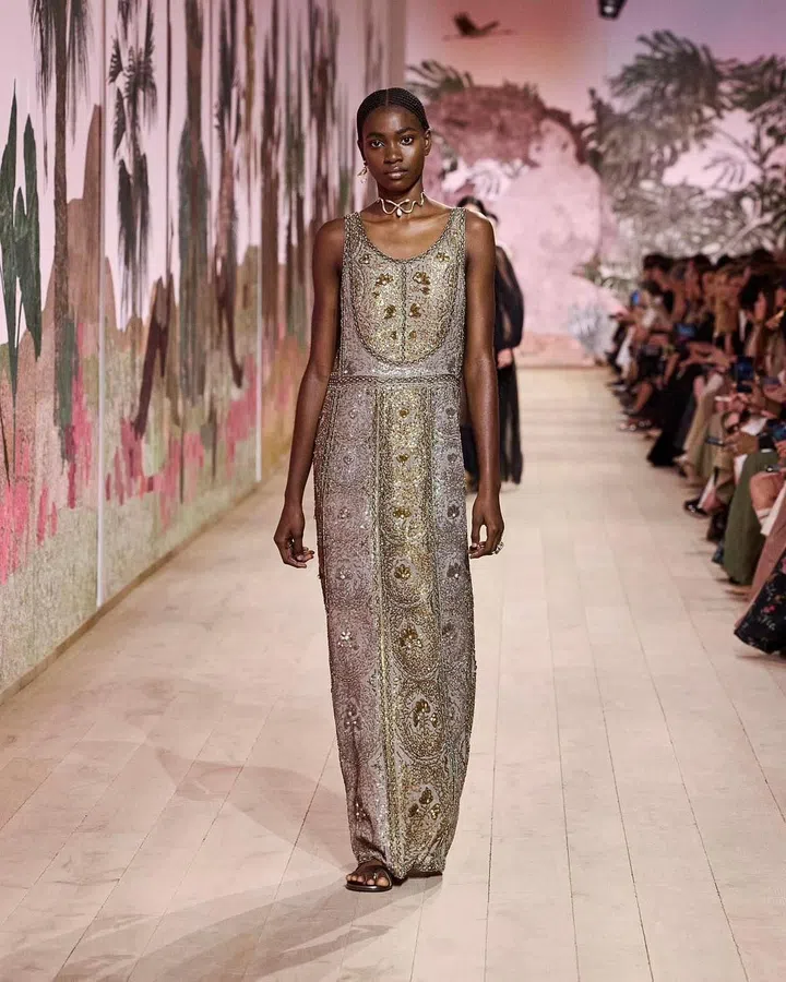 迪奥(Dior)2023-2024秋冬高级定制系列发布会于巴黎罗丹美术馆(Musée Rodin)举行,品牌女装创意总监Maria Grazia Chiuri透过女性视角重塑希腊罗马神话,以大气高尚的高级服装展示了女性的力量。意大利艺术家Marta Roberti深入探索西方文化中有关少数族裔的内容,将女性、动物等形象焕新演绎,其创作经孟买查纳雅工艺学校(Chanakya school of craft)的能工巧匠之手,幻化为成发布会上的美丽背景。