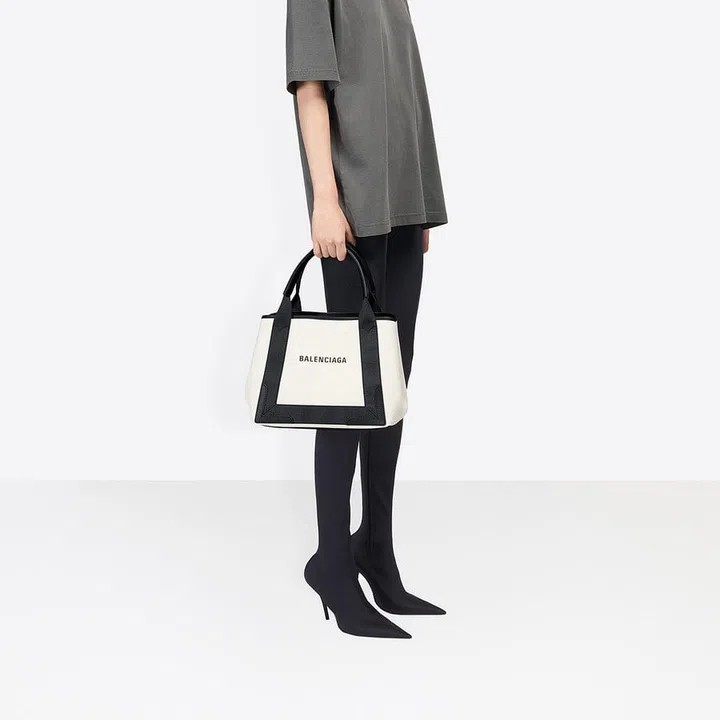 有别于一般方正的外型,Balenciaga这款Cabas S托特包以经典的白色及深蓝色搭配,能伴你走过无数个季节。采用圆形顶部手柄,包包正面饰有印刷徽标,内部则附有一个拉链小收纳袋。