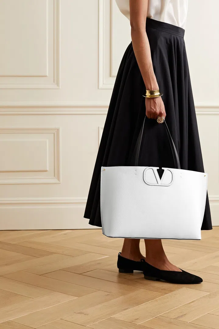 单看包包的名字,就已知晓它的容量可不小。这款Valentino Garavani Fill Me 中号托特包可装下笔记本电脑、化妆包和其他日常用品等,采用白色纹理皮革,正面装点着Logo 饰牌,还配有醒目的黑色包柄,与包包形成鲜明对比。
