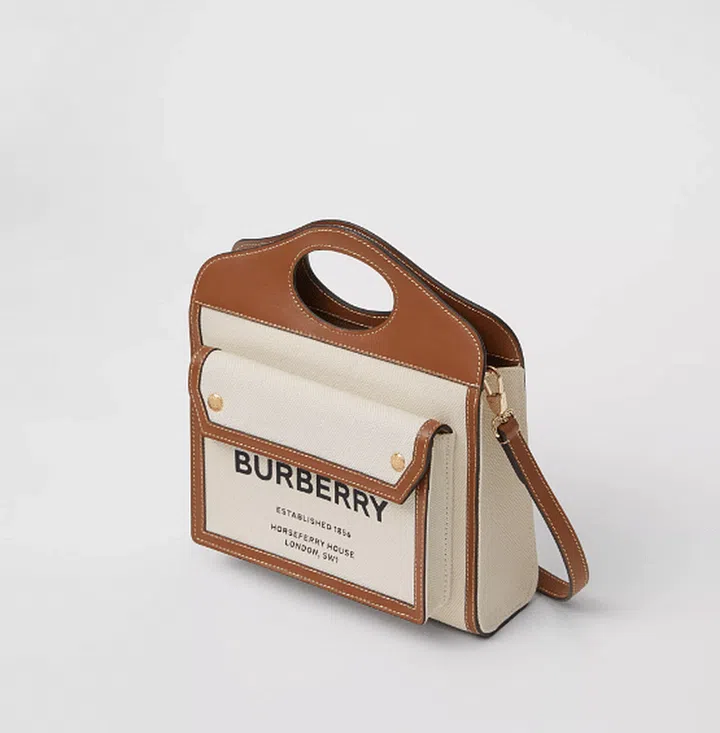 Burberry Pocket 帆布包包顾名思义,犹如大衣的口袋一样,要一次过放置手提电脑和化妆品等日常用品都不是问题。包袋采用双色帆布拼缉明线皮革制成,正面口袋装饰 Horseferry 印花,并可使用加固式皮革提柄手拎,或使用可拆式肩背带携带。