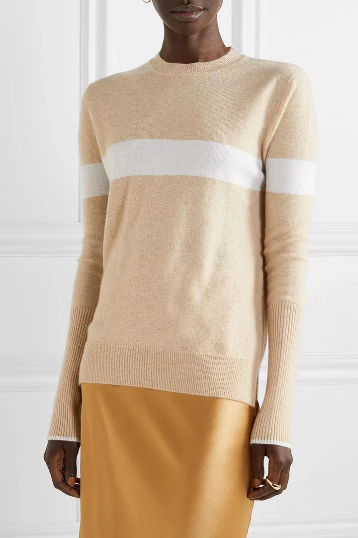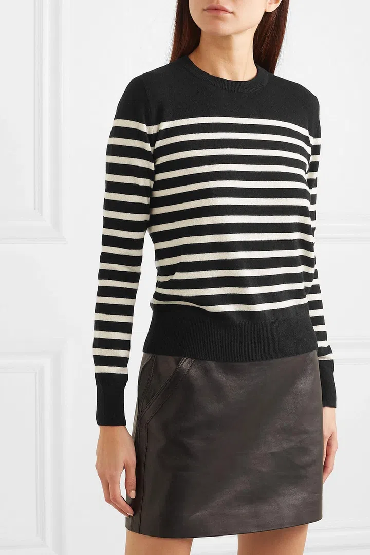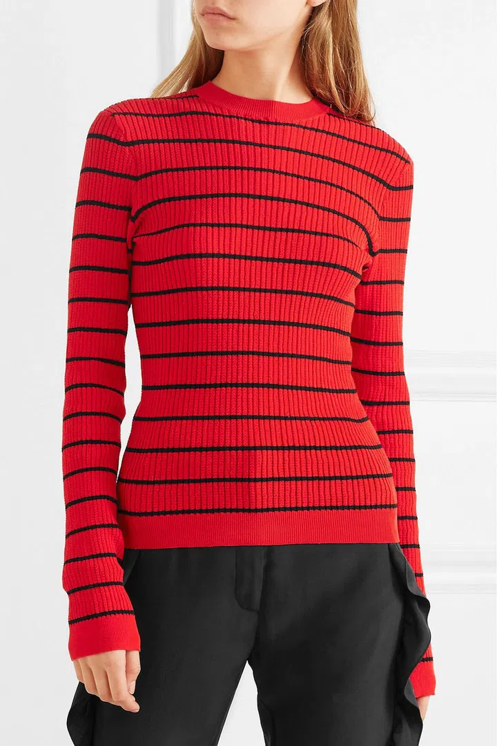 现在,知道自己想要的条纹方向与粗细了,还需考虑条纹出现在什么地方。图中这款La Ligne的条纹出现在胸前和手臂,让这些部位显得比较宽阔,适合三角形或梨型身材的人士,不适合肩膀宽阔的人。