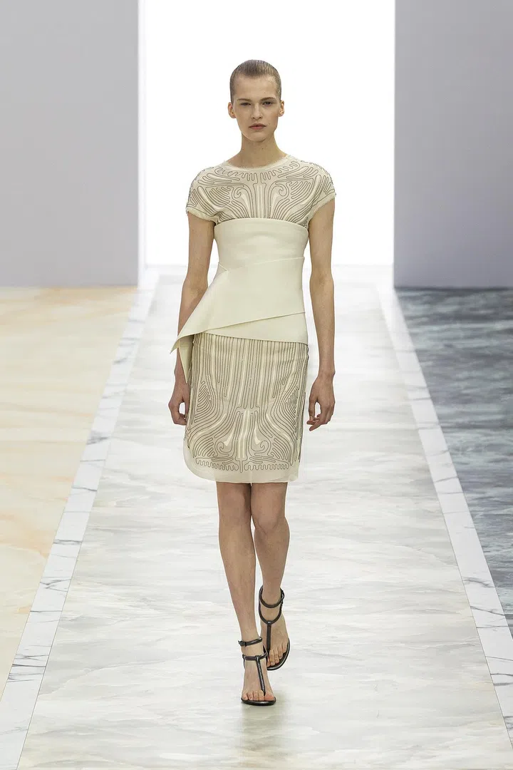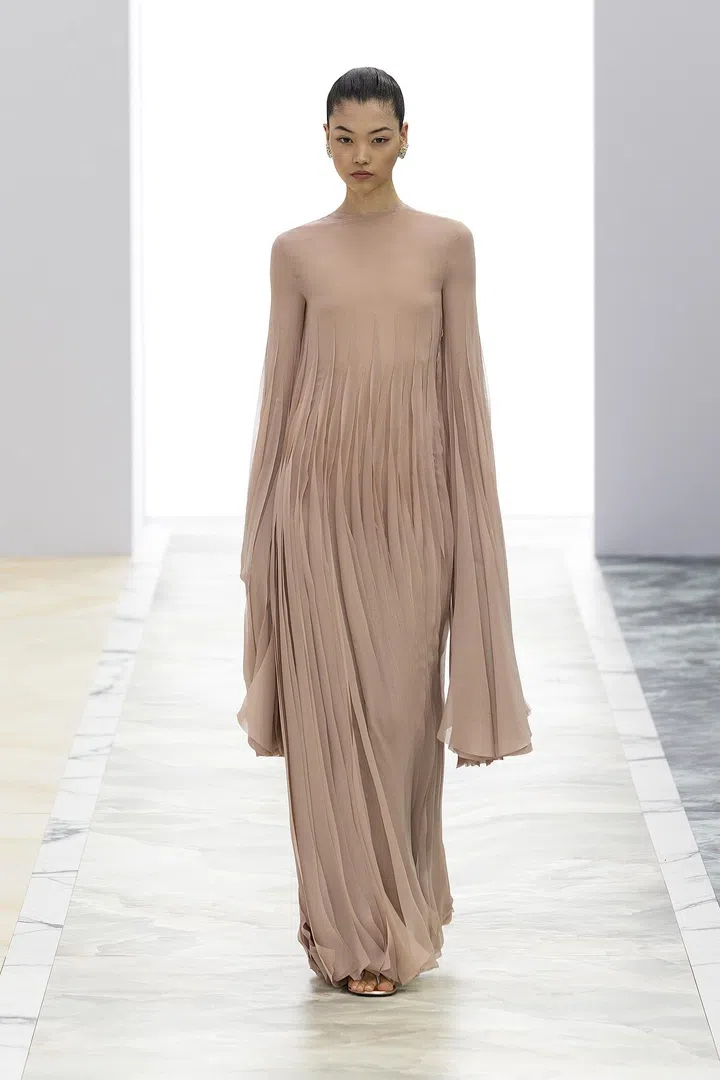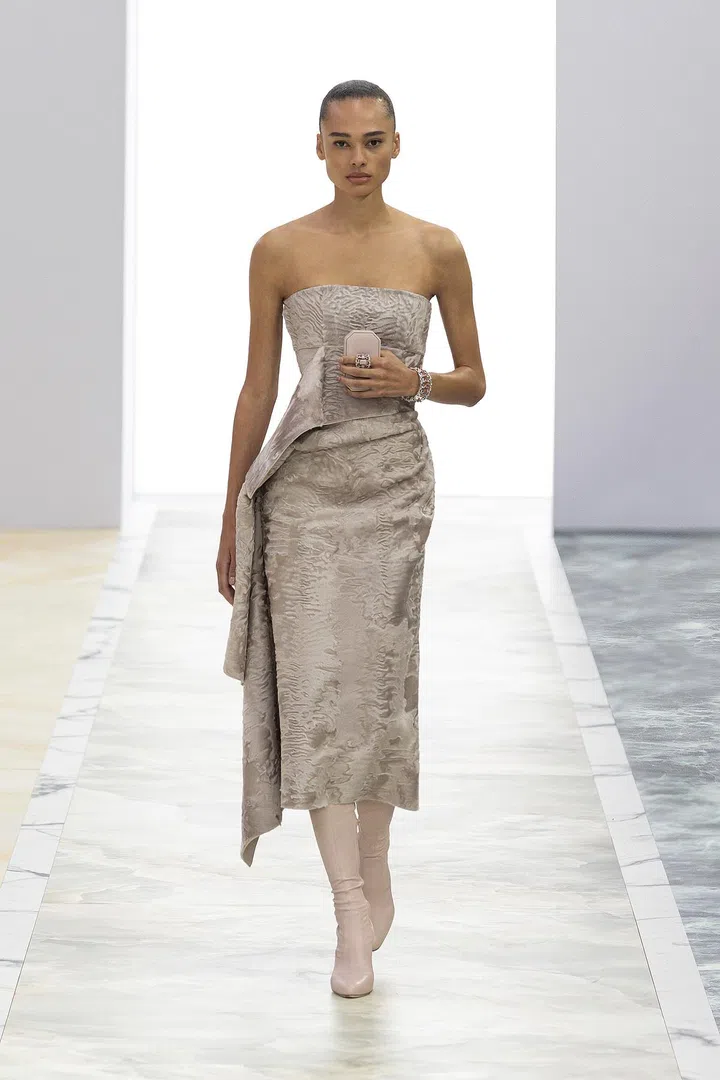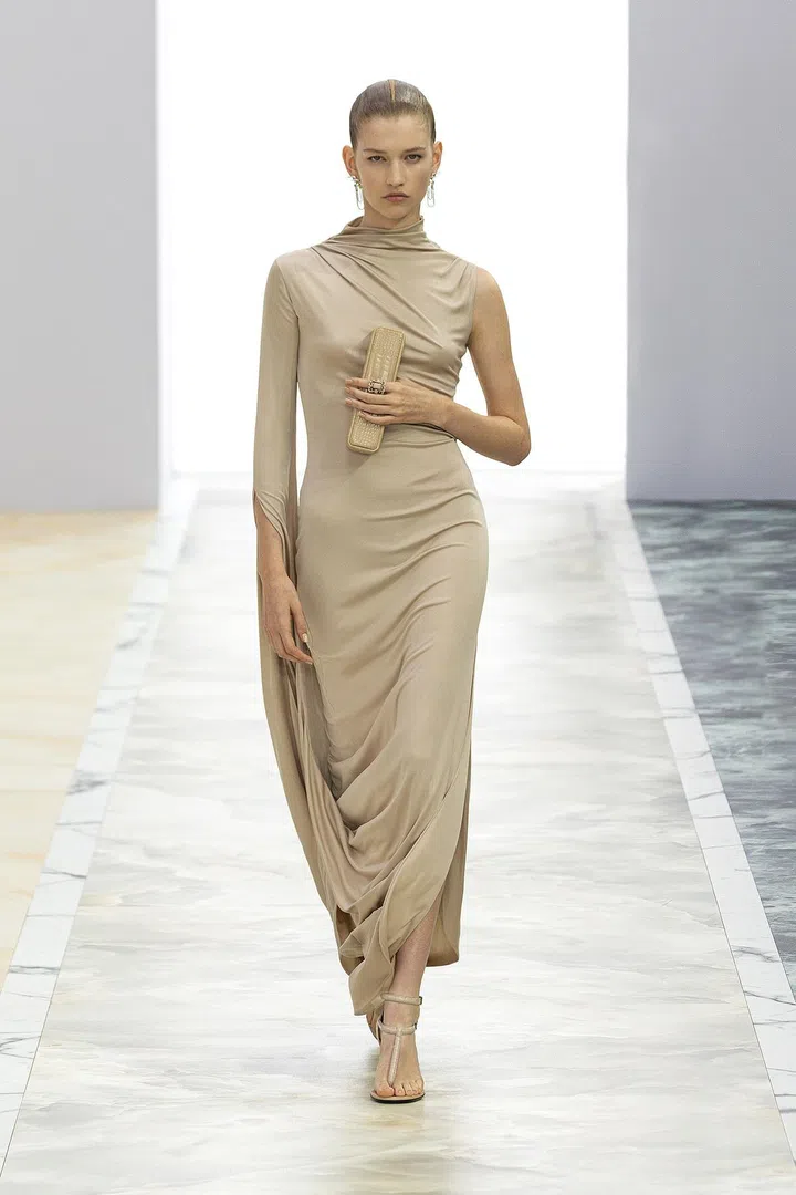 Fendi 2023秋冬高级定制系列,由品牌女装创意总监Kim Jones与珠宝艺术总监Delfina Delletrez Fendi携手打造。本季,专注于流畅剪裁、垂坠效果和别致造型,将现代艺术视觉与经典风范融合,让高定时装变得更贴近平凡人,让穿着高定时装的女性感受轻盈自如。看似简约设计却隐藏着复杂的细节,通过精湛的裁剪塑造出层次感和立体效果,大部分服饰仅有一道接缝线,再次彰显品牌工匠的巧手。