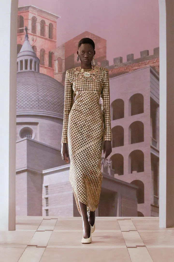 芬迪(Fendi) 2021-2022秋冬高级定制系列,是女装创意总监Kim Jones为品牌操刀的第二个高定系列,他选在罗马的“永恒之城”停驻,受到意大利导演Pier Paolo Pasolini的启发,呈现诗意优雅的高定服装。