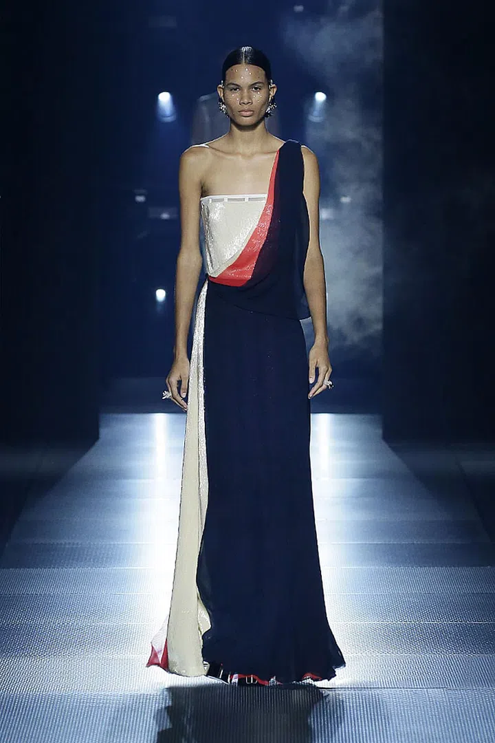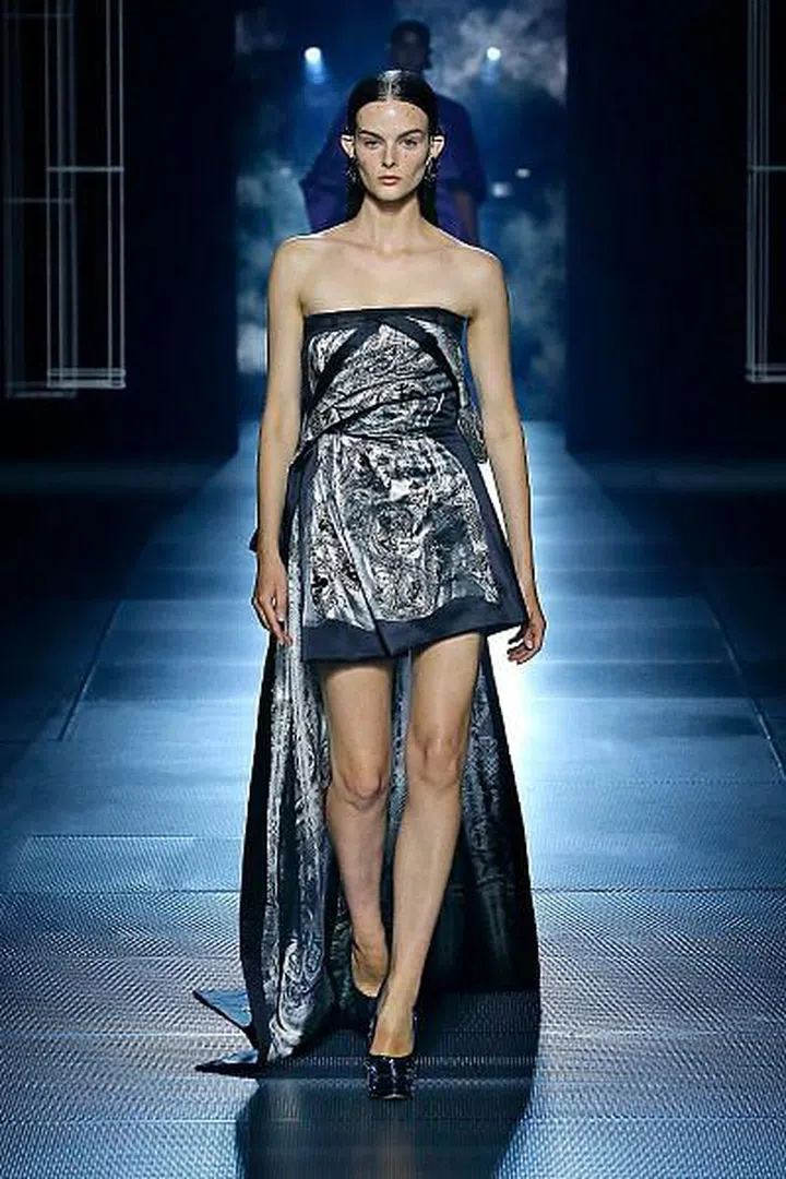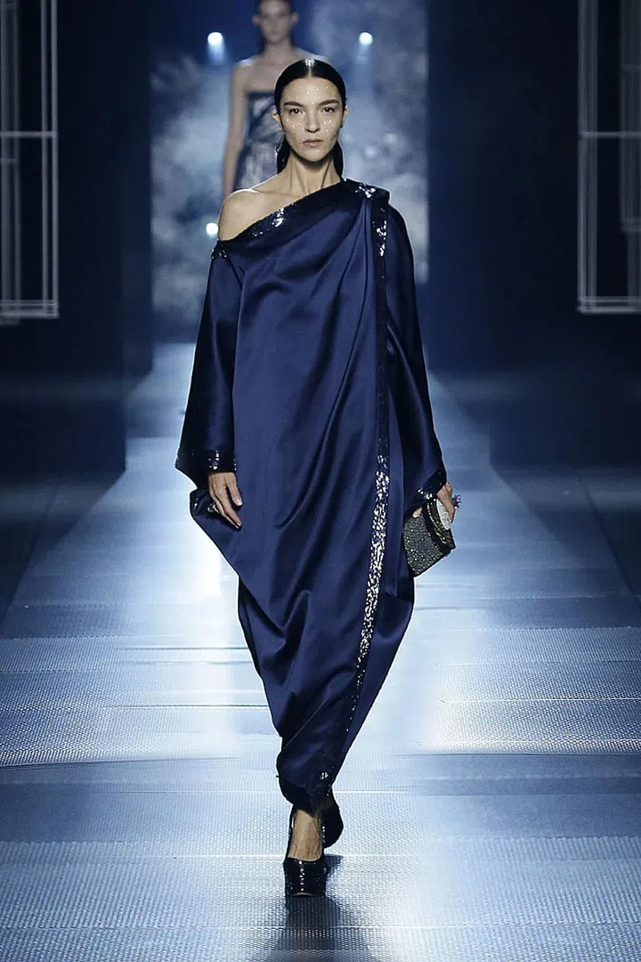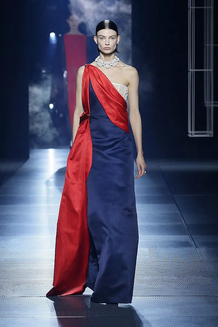 这并非Kim Jones 第一次向“永恒之城”罗马致敬,就在去年的2021秋冬高级定制系列中,他就以罗马的风景和建筑为灵感。来到2022春夏高定系列,Kim Jones 在一个挑战时间和空间的未来主义框架内探索这座城市的历史代码、大理石雕像和美学。