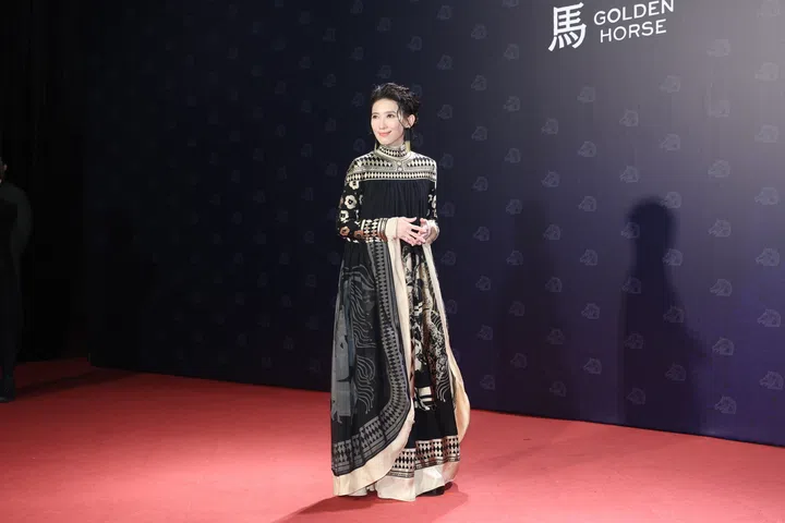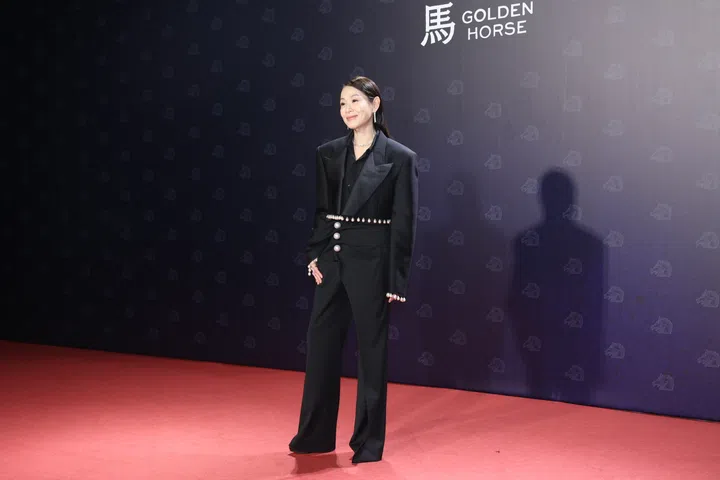 刘若英凭《我们意外的勇气》入围金马影后,她身穿韩国新锐设计师品牌Kimhekim的全黑结构感西装,夸张肩线与珍珠点缀打造前卫廓形,冷静又不失锋芒。