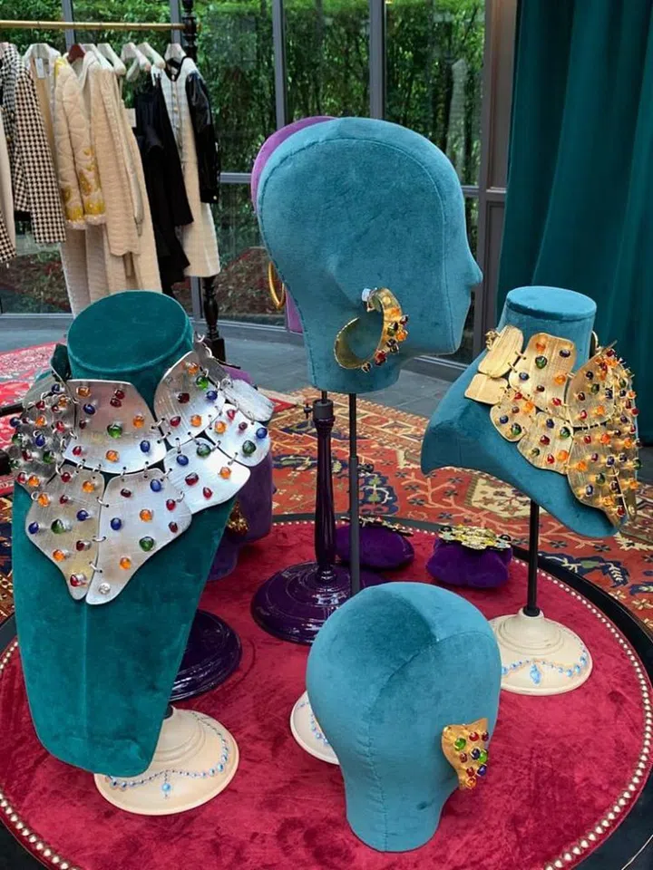 除了丰富多样的面具外,该季受瞩目的还有模特儿脸上的眼泪水珠、套在耳朵上的金属耳环、及锁在颈上或垂挂胸前的金属铆钉配件。眼泪是象征宗教泪水,Michele希望借以引发情绪,而泪水是情绪化的最佳代表。耳上的金属饰物的灵感则源自艺术家Eduardo Costa1于1968年发表的24克拉黄金作品“Fashion Fiction 1”。这一季,系列中的金属配饰更与服装相辅相成,Michele再度将视觉与另类材质间的冲突美感完美融合。