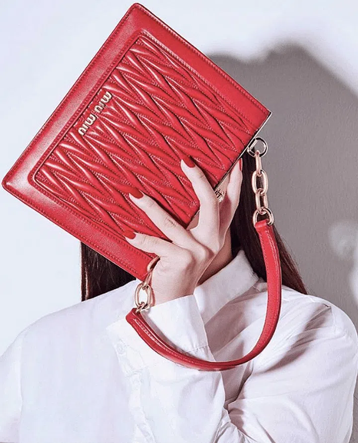 光芒四射的Miu Miu 2019春夏系列,推出新款Solitaire Frame手提袋,以经典简洁的线条,搭配耀眼的“钻石”包扣,背面则饰有金属刻字徽标,格外吸睛。包包共有多种材质可选择,无论是马特拉塞凸纹手皮革,还是仿鳄鱼皮的闪亮纹路,尽显包包的优美造型且易于搭配,释放高贵典雅、个性奢华的时尚灵魂。