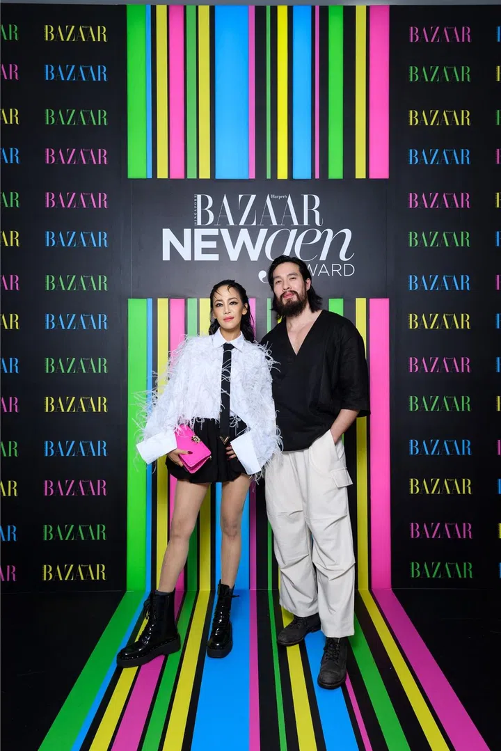 《Harper's BAZAAR》新加坡总编辑Kenneth Goh与2023年NewGen时尚大奖冠军Lim Su HuiCredit: Ashley Mak