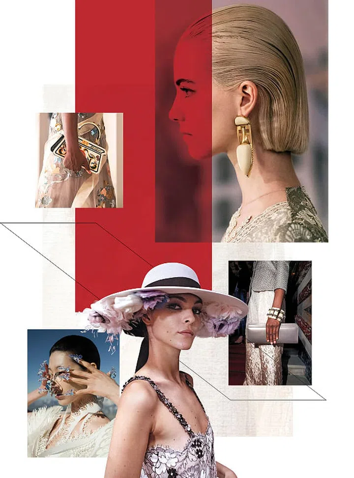 Chanel的帽饰则由Michel制帽坊细心打造,尽显浪漫与奢华。Giorgio Armani Prive的手拿包利落前卫,配上夸张的手镯,碰撞出独特美感。作为时尚和科技结合的先锋,Iris Van Herpen在造型上的每一处细节都不马虎,模特儿的反光透视美甲,梦幻前卫,带领观众走进未来世界。