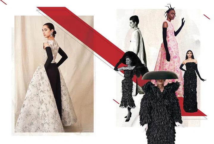 设计师以建筑延伸的剪裁灵感赋予服装全新风貌,用匠心技艺诠释现代着装元素。品牌也与多个杰出的高级定制手工坊和制造商合作,包括Lesage刺绣坊、Lemarie茶花与羽饰坊和Montex刺绣坊等,重新演绎品牌标志性轮廓设计,如:茧形轮廓及荡领裁剪。为了向品牌创始人致意,Demna Gvasalia将创始人名字的首字母缩写C.B,以手工刺绣,精心的绣在丝绸领带、府绸衬衫和皮手套上。