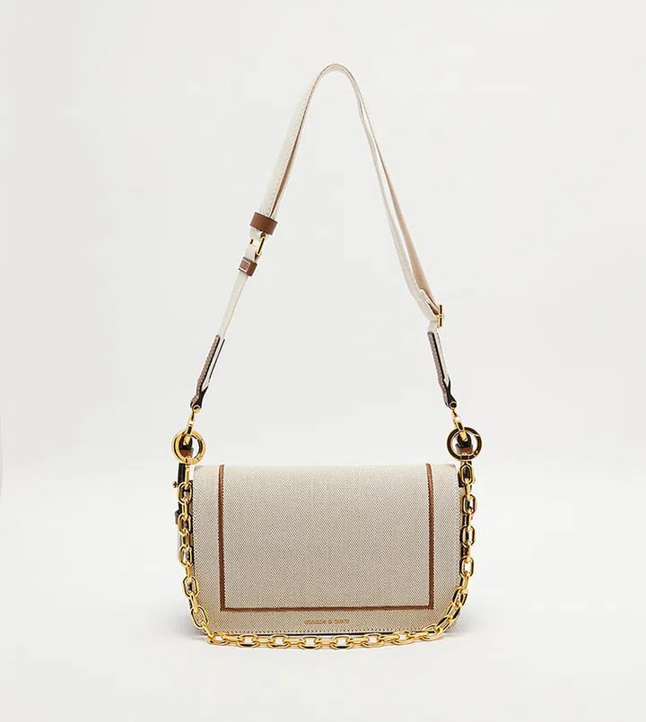 在接送醉酒男友回家时,“徐晓薇”则背上我国小资品牌CHARLES & KEITH的“Astra”翻盖包。在设计上,这款包包就以通勤包为定位,米色和咖色拼接的外观,有着帆布和链条两条肩带,解锁不同的造型,尺寸还能放下笔记本和平板电脑等工作必需品。