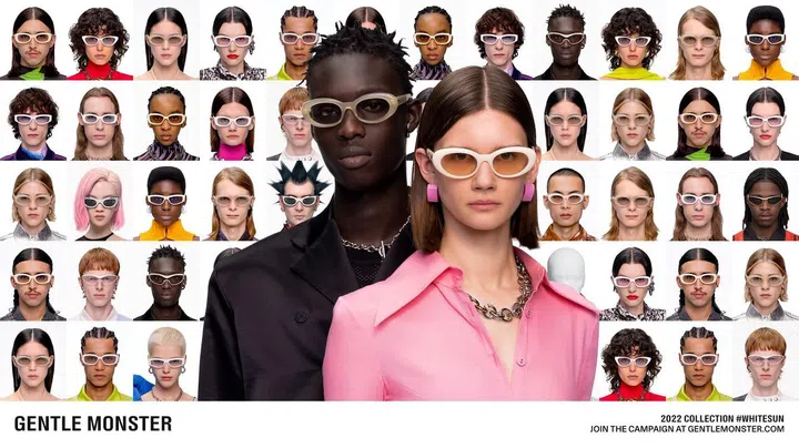 Gentle Monster 2022 全新系列试图在日常生活中,发掘品牌与体验者的多极互动。除了一贯保有的经典黑超框型,此次全新系列也带来更多设计上的突破。新系列项目以“白色太阳系”(White Sun)为名称和主题,透过佩戴者的演绎,展现了白色太阳镜的无限可能。新发布的白色镜框单品,亦有各类半透明与渐变配色,皆提供有效UV防护,融合冷暖色调设计,呈现佩戴者的多元形象。品牌更邀请顾客一同参与White Sun项目,上传自己的照片到官网上,加入这个多元表达的世界中。