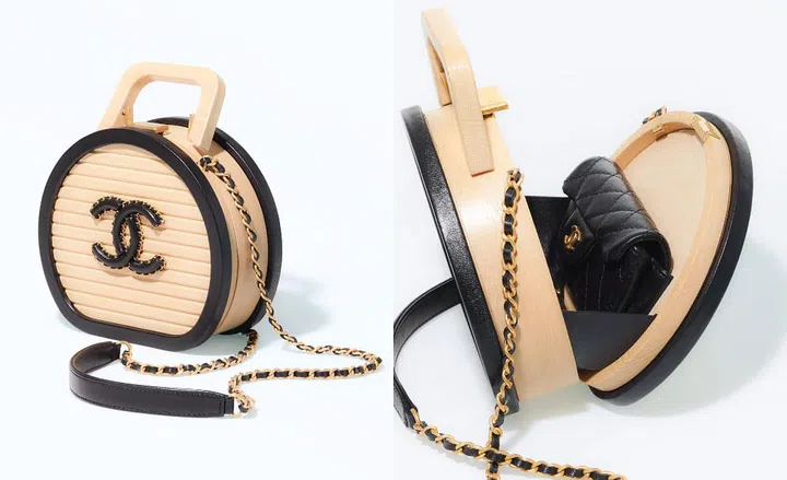 取材自1960年先锋电影《奥菲斯的遗嘱》,Chanel 2022早春度假系列配饰,主要以鲜明的黑白撞色为基调,并在包包中融入朋克印花、金属锁链、皮革流苏、金属夹等设计元素,优雅中带点摇滚风韵。本季,Chanel新推出的化妆包采用山毛榉木打造出硬朗圆形结构,点缀小牛皮包裹边框,无论手提还是斜背,都能让造型看起来更加精致。