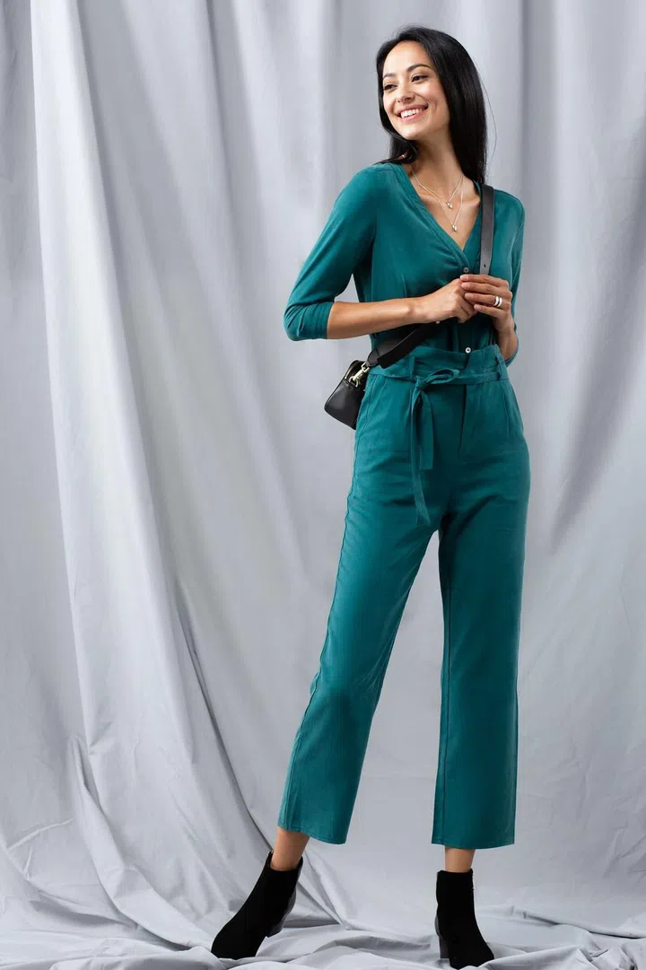 来自香港的“慢时尚”品牌Tove & Libra走的是简约经典的时尚风格,特点在于品牌结合了环保理念与卓越的品质,打造永恒百搭的设计款式。在2019秋冬系列中,这款连身长裤是品牌主打的单品之一,由100%天丝面料制成,让成衣穿起来柔软,丝滑且十分透气,为顾客提供极致舒适感。另外,衣装采用高腰设计,并在腰间设有绑带细节,为女性提供修身效果的同时,更能让穿戴者的整体比例更加完美。