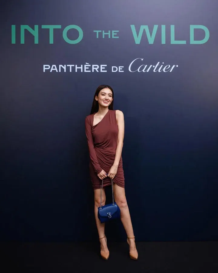 出席卡地亚品牌活动的洪凌,选择了版型修身的连身裙,裙身装饰细腻褶皱,紧密贴合身形,领口的cut-out设计露出美丽锁骨,手提Panthère de Cartier链条包,生动诠释简约之美。