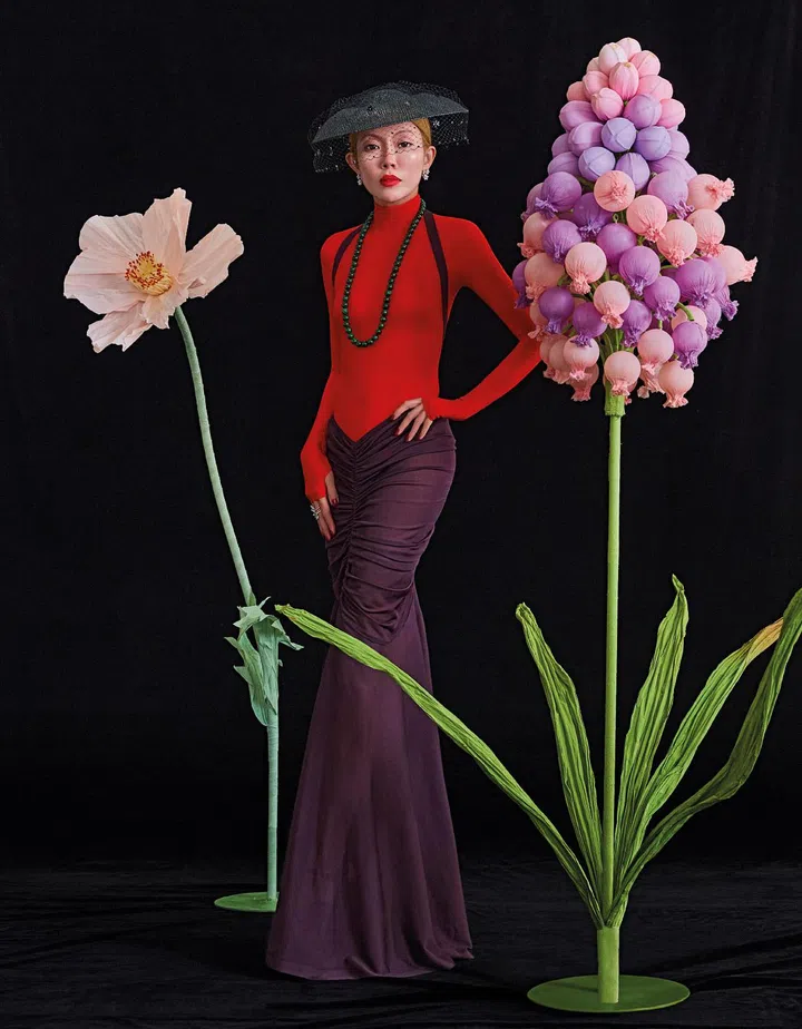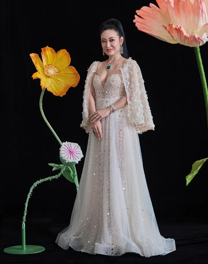 龙稚真总能穿出独特韵味,以独具一格的时尚风格带来令人惊喜的造型。这次,她选择了一袭符合个人风格的Azzedine Alaia 2023春夏系列造型,灵感取自Yves Saint Laurent的“东方梦境”系列,向中华传统服饰致敬。配饰方面,她以Stephen Jones帽饰、梵克雅宝(Van Cleef & Arpels)珠宝以及南洋珠宝行(Nanyang Jade and Jewellery)项链做搭配,以现代姿态演绎新中式风格。