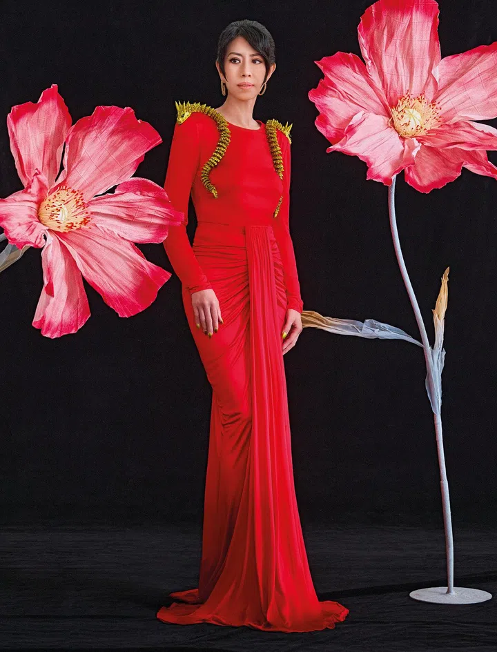 钟蒙爱说,每次收到《风华》晚宴主题邀请时都充满期待,因为她可以尝试不同的时尚风格。这回她选择一件Dolce & Gabbana的大红色 垂坠式礼服,肩部装饰以引人注目的奢华立体龙图腾,漂亮展现她对“现代东方之美”的理解。为凸显造型,她还佩戴卡地亚(Cartier) 的Clash de Cartier系列大号圆环耳环,与龙图腾相得益彰。