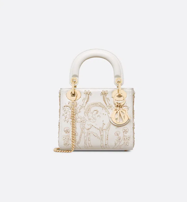 标志性的Lady Dior手袋诠释品牌对优雅的独到理解,这款迷你手袋采用奶白色牛皮革,缀以Pietro Ruffo设计的同色调Millefiori Unicorn图案刺绣,以充满诗情画意的花卉设计展示来自苏格兰神话的独角兽符号,彰显精湛工艺。