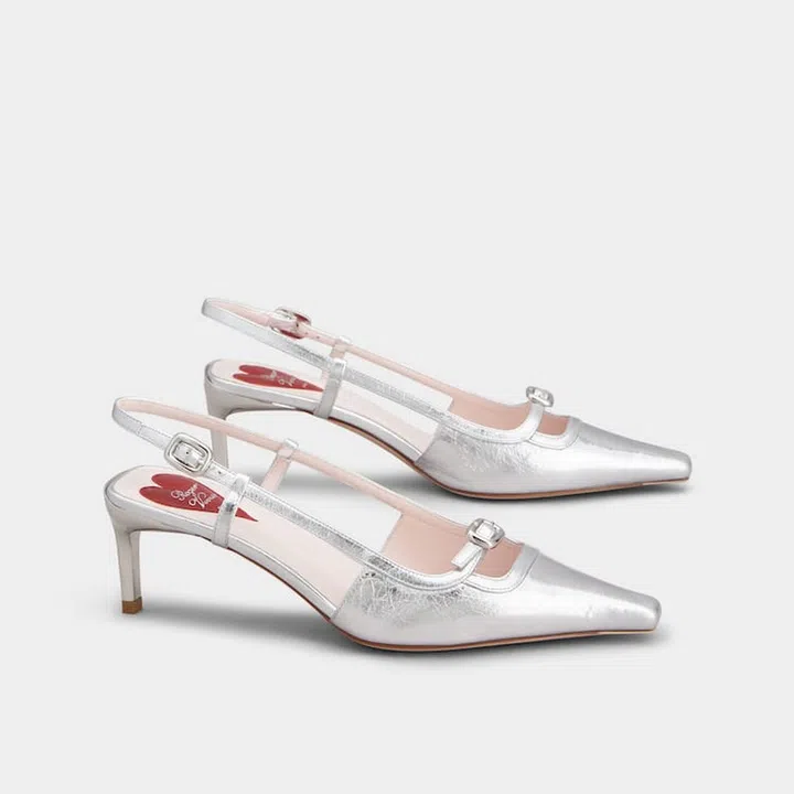 如果你不想穿太高的高跟鞋出席晚宴,毕竟整晚要走动,不妨考虑这款Roger Vivier Viv’ Canard皮革后袢带高跟鞋。鞋跟高度为5.5cm,采用金属色皮革制成,独特的尖方头设计别具一格。纤细的踝部扣带点缀迷你饰扣,既舒适大方,又不失优雅气质。