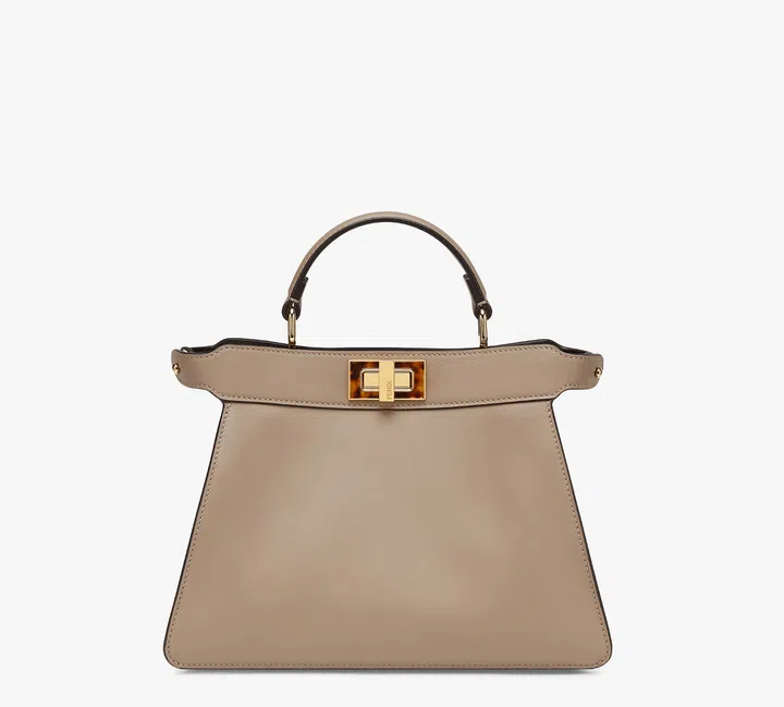 由Fendi家族第三代继承人Silvia Venturini Fendi于2009年设计的Peekaboo手袋,取名自“躲猫猫”,包包的外形看起来端庄大方,内衬却充满俏皮趣味,让包名与设计不谋而合。多年来,品牌不断变化、演进,衍生出一系列的Peekaboo家族,如Peekaboo Essential、Peekaboo Essentially、Peekaboo X-Lite、Peekaboo ISeeU 等,并加入各式各样的新元素,例如材质上的变化、尺寸、各种宽带和毛球等配饰,令手袋设计丰富多样。在新发布的2022年春夏系列中,品牌为Peekaboo ISeeU手袋系列增添新成员——Petite和Micro新尺寸,成为日夜皆宜的理想配饰。