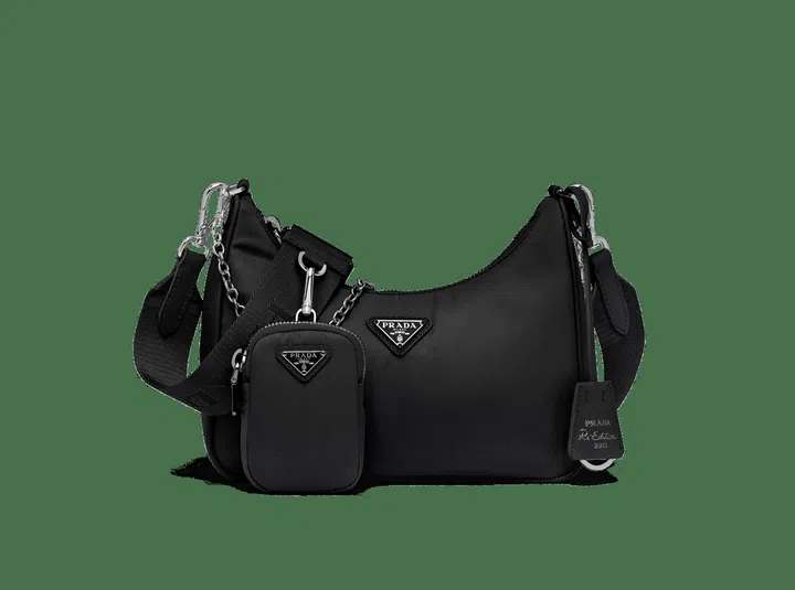 Prada 复古腋下包绝对是品牌的人气款式,Prada Re-Edition 2005手袋复刻了2005年推出的Hobo包型,还附有一个可拆卸小袋。包包将不同的复古形状与环保Re-Nylon等创新面料融为一体,而新月廓形兼具极简主义风格与实用功能,能够打造出不同的造型。
