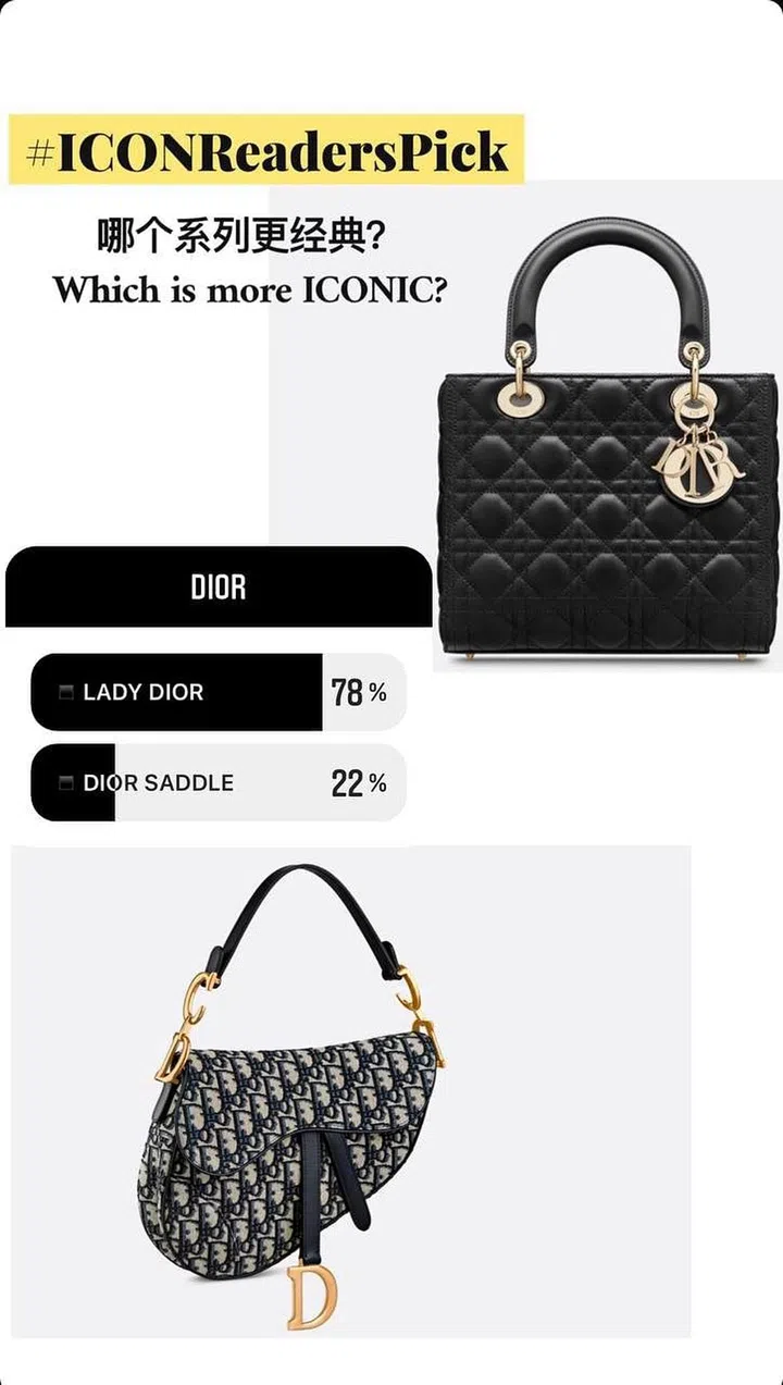 入围的另一款Dior Saddle手袋则诞生于1999年,由设计鬼才John Galliano创作,造型极具特色,马鞍形的翻盖设计搭配“D”字形吊饰,手柄两侧以“CD”链接的标志,具有超高的品牌辨识度。