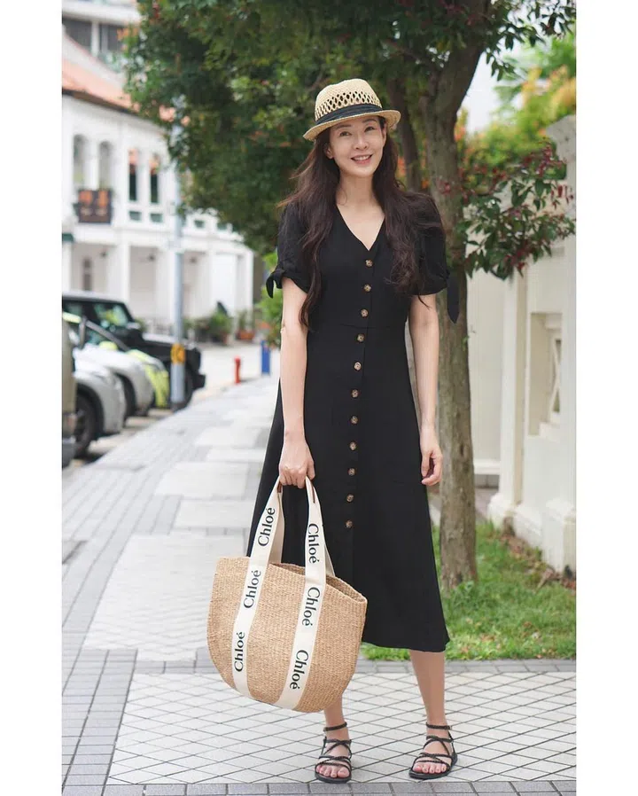 草编包,是夏日造型的必备单品!刘子绚背的这款Chloe Woody竹篮包以皮革饰边,配有醒目的Logo帆布袢带,不仅时髦大方,宽敞包身更能容纳日常出门必备物品、太阳镜和书册等。